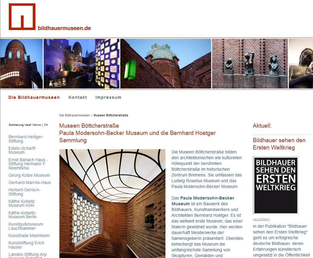 Die Museen Böttcherstraße sind mit ihrem Sammlungsschwerpunkt zum Bildhauer, Architekt, Grafiker, Kunsthandwerker und Maler Bernhard Hoetger (1874–1949) jetzt Mitglied im Verband Bildhauermuseen und Skulpturensammlungen e.V.