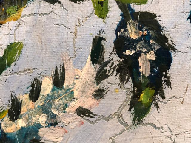 Die Risse lassen sich auf die besonderen Materialien und die Technik Séraphine Louis‘ zurückführen, die die Farben nass in nass auf die Leinwand setzte, d. h. in mehreren Schichten arbeitete und nicht abwartete, ehe die untere Schicht getrocknet war. Das Ergebnis ist spektakulär: Die Bilder wirken, als würde der Hintergrund in die vordere Bildebene gezogen und würde mit den Pflanzenformen zu einer transparenten ornamentalen Struktur verschmelzen. Ob Louis das Craquelé gezielt herbeiführte oder es als unvermeidlichen Teil eines Malprozesses in Kauf nahm sei dahingestellt.