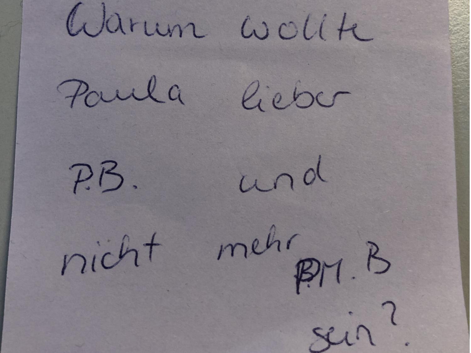 Die Entstehung dieses Bildes fiel in eine Zeit, als sie sich von ihrem Mann trennen wollte, um zugleich eigenständig als Künstlerin in Paris zu leben. Das Weglassen des Namens ihres Mannes dürfte vor diesem Hintergrund zu lesen sein, zumal sie ansonsten in der Regel nicht signierte. Die P.M.B.-Signatur auf einigen Bildern wurde von Otto Modersohn nach ihrem Tod aufgetragen, um die Werke als die seiner Frau zu bestätigen.