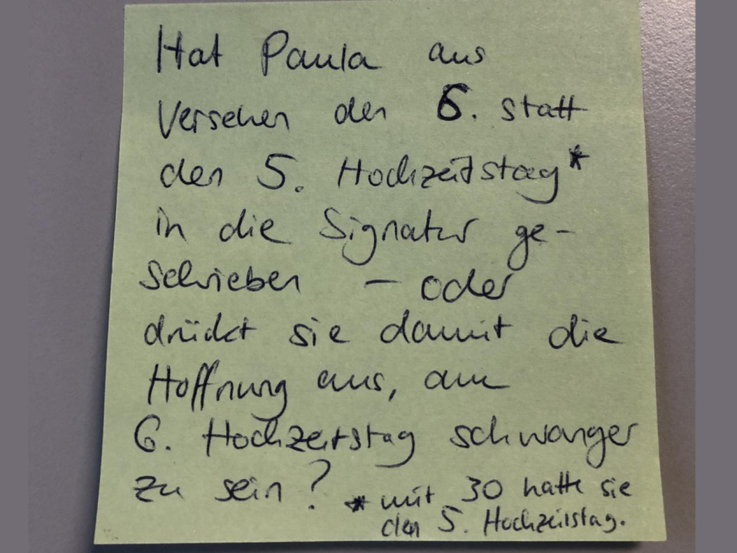 Bei Paula Modersohn Becker gibt es einige Studien, die relativ schnell entstanden sind, in wenigen Stunden oder Tagen. Am „Selbstbildnis am 6. Hochzeitstag“ hat sie aber sicherlich mehrere Tage, wenn nicht gar Wochen gearbeitet. Es ist in mehreren Schichten gemalt und sehr ausgeführt. Die Inschrift unten rechts meint also eher den Anlass und den ungefähren Zeitraum des Entstehens.